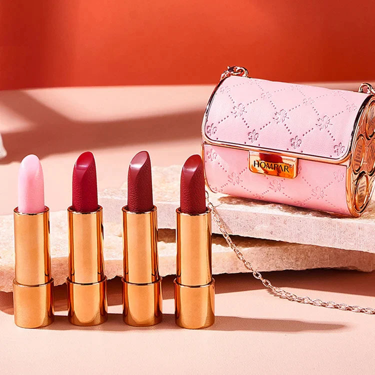 Light up your beautiful lips with our matte lipstick set in a charming chain bag!